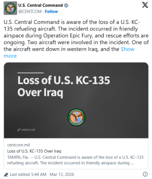 巧合?伊朗最高领袖刚发表首份声明,美军就掉了一架大型加油机