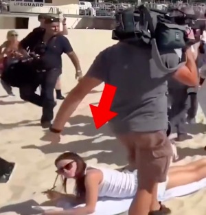 女子无视英国王子夫妇继续晒太阳